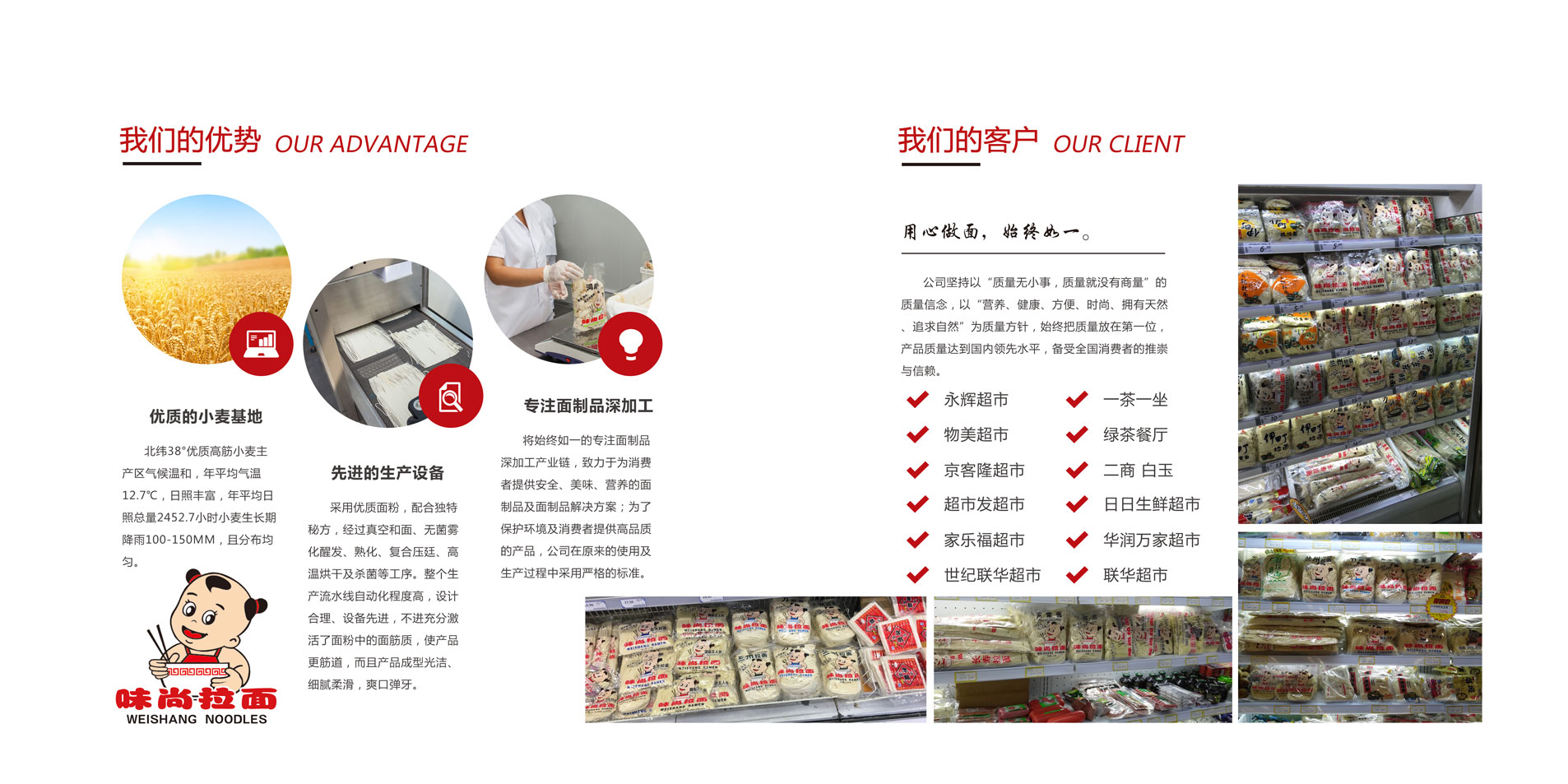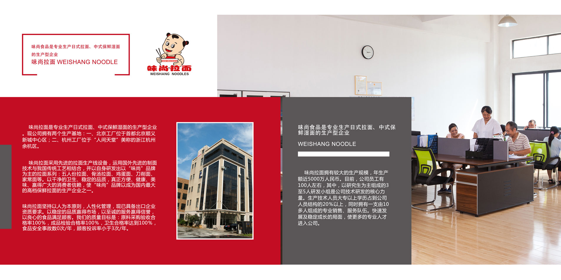 北京無限風光食品有限公司是(shì)一(yī→)家(jiā)專業(yè)生(shēng)産日(rì)式拉面×→©↑、中式保鮮生(shēng)濕面的(de)食品企業(yèσ")。公司成立于2009年(nián)6月(yuè),位于北(běi)京市(₩φshì)順義區(qū)牛欄山(shān)開(kāi)發區(qū)。公司引×∏進全套日(rì)本自(zì)動生(shēng)産線,并與我國(guó)傳π¥統制(zhì)面工(gōng)藝相(xiàng)結合,研發出&₽¥ldquo;味尚”品牌--家(ji₹γ☆±ā)常面、雞蛋面、刀(dāo)削面、長(cháng)壽面、北 φ>(běi)方拉面、蘭州拉面、日(rì)式拉面、炸醬面等八大(dà)高(gāo>'Ω¶)端系列産品。